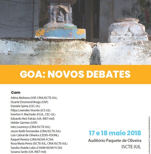 O nosso investigador, o Doutor Luís Cabral de Oliveira, irá participar no workshop “Goa: novos debates”, que tem como objetivo pôr em debate pesquisas em curso sobre Goa em ciências sociais (com ênfase na antropologia) e nas humanidades (com destaque para os estudos literários e históricos). Estas pesquisas, de investigadores que têm trabalhado em conjunto nos últimos anos, sobretudo em torno do projeto internacional Pensando Goa (São Paulo, FAPESP), têm em comum a preocupação de abandonar abordagens estereotipadas de Goa, centradas na herança e na memória colonial portuguesa, que a têm imobilizado no tempo, retirando-lhe dinamismo e mecanismos de transformação.