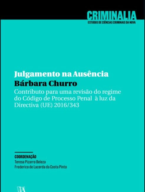 Bárbara Churro, Julgamento na Ausência, n.º 3 da Colecção Criminalia, coord. de Teresa Pizarro Beleza e Frederico de Lacerda da Costa Pinto, Coimbra: Almedina, 2020.