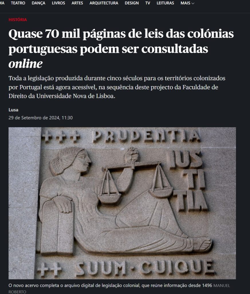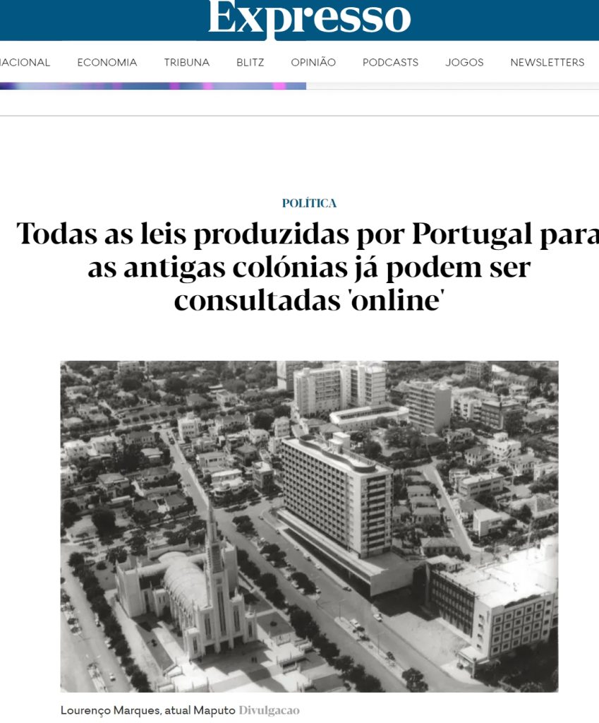 Todas as leis produzidas por Portugal para as antigas colónias já podem ser consultadas 'online'Jornal ExpressoCerca de 70 mil páginas de legislação produzida por Portugal para as antigas colónias, entre 1910 e 1970, foram digitalizadas e vão estar acessíveis ao...