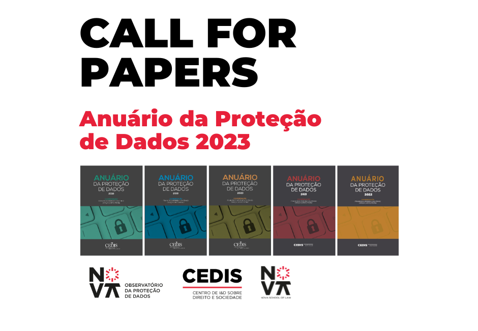 O Observatório da Proteção de Dados Pessoais da NOVA School of Law e do CEDIS – Centro de Investigação em Direito e Sociedade convida todos/as os/as interessados/as a apresentar propostas de artigos para o “Anuário da Proteção de Dados – 2023”. A submissão de textos deve seguir as orientações indicadas de seguida.