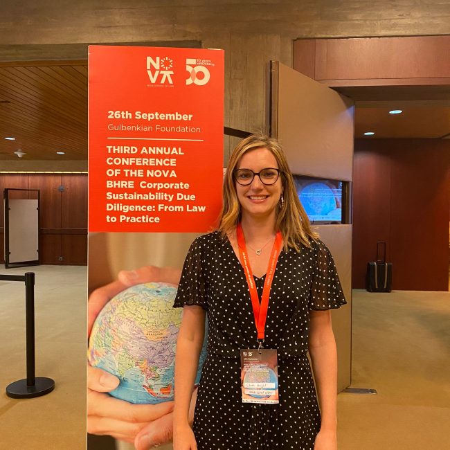 Against this backdrop, legislative developments have taken place at the national and European levels in order to uphold human rights and environmental standards in corporate activities. These developments have been mainly centred around the concept of corporate sustainability due diligence which requires companies to put in place processes in order to identify and address the adverse impact that can result from their own activities and the ones of their business partners throughout their global value chains. Claire Bright’s research is centred around this concept, and ultimately resulted in the creation of the NOVA Centre on Business, Human Rights and the Environment (NOVA BHRE). Through NOVA BHRE, Claire has implemented a series of initiatives that involved students at different stages and resulted in policy reports and expert studies that have directly influenced the regulatory and policy developments occurring in the field. Specifically, Claire Bright was co-author of a major report for the European Commission on Due Diligence Requirements through the Supply Chains which forms the basis of the Corporate Sustainability Due Diligence Directive which was entered into force on the 25th of July 2024 and will require large companies operating in the EU to put in place corporate sustainability due diligence processes in order to identify and address adverse human rights and environmental impacts with which they can be involved through their own operations and across their global value chains, thereby fostering sustainable and responsible business practices.