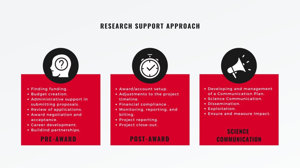 The office is also dedicated to the effective management of funding, projects, contracts, scholarships, research networks, publications, training sessions, meetings, and other scientific activities, ensuring that all processes are carried out in an organized and efficient manner.