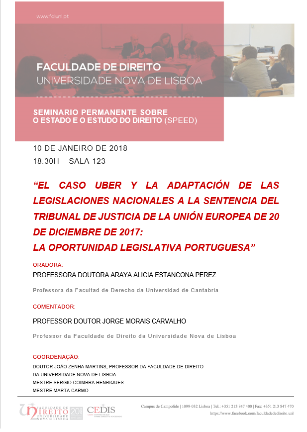 10 de Janeiro: O Caso Uber e a Adaptação das Legislações Nacionais à Sentença do Tribunal de Justiça da União Europeia de 20 de Dezembro de 2017 - A Oportunidade Legislativa.