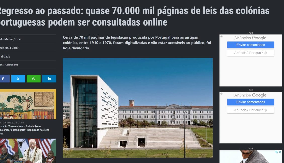Regresso ao passado: quase 70.000 mil páginas de leis das colónias portuguesas podem ser consultadas online
