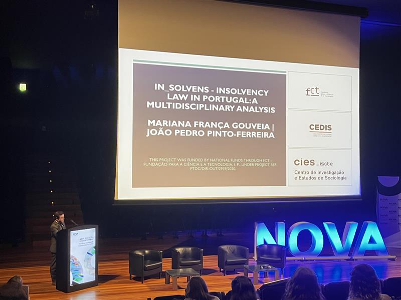 João Pedro Pinto-Ferreira, Professor Auxiliar na Faculdade e membro integrado do CEDIS, apresentou o projeto IN-SOLVEns na sessão Research Highlights: R&D Projects led or co-led by NOVA Researchers. Este projeto de investigação visa melhorar os processos de insolvência e reestruturação empresarial, propondo soluções inovadoras para apoiar empresas em dificuldades financeiras. A sua participação sublinhou o compromisso da NOVA School of Law em enfrentar os desafios económicos atuais com propostas criativas e eficazes.